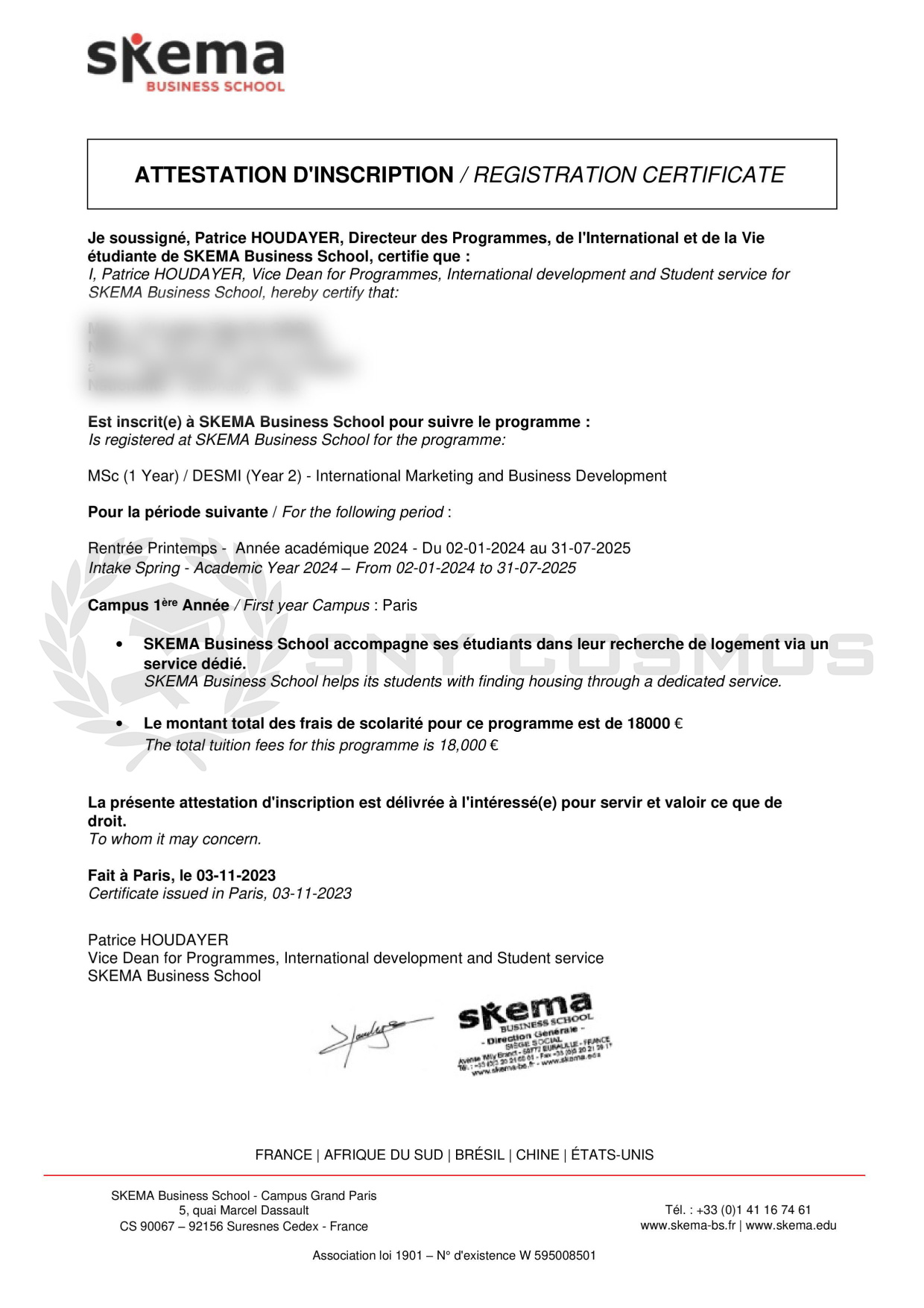 I am someone who was looking for transition in my career path and looking for good abroad masters’ options in Europe. I visited many consultancies in Vijayawada but haven't felt assured and got many options. I came across SNY COSMOS consultancy through Google search and I am very happy that I visited them. My experience with SNY COSMOS consultancy was commendable, emphasizing the consistency between consultation promises and actual work. The process was seamless, cost-effective, and guided effectively, leading to my admission in Skema Business School which is a top Parisian business school in International Marketing and Business Development program. The Visa process also went very smooth with their assistance and I haven't found any difficulty throughout. The consultancy's prompt and supportive approach, coupled with their patience in addressing doubts, set them apart from others. Overall, I consider them the best choice and recommend them for their helpful leads and suggestions tailored to individuals pursuing master's degrees in Europe.